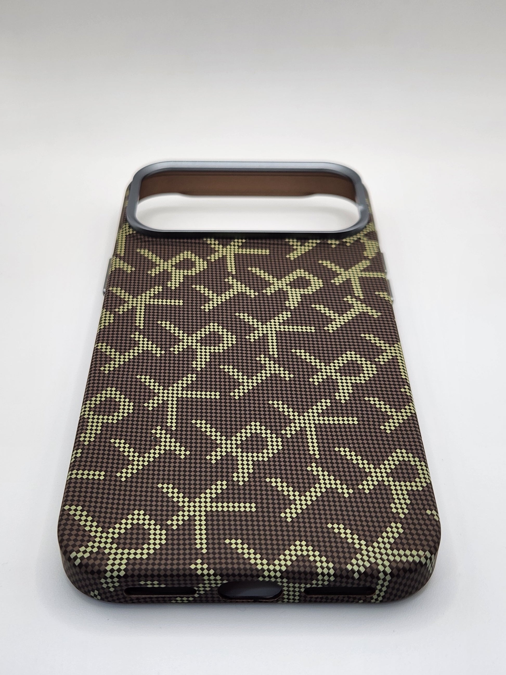 بوشيط آيفون مصنوع من خامة كربونية عالية الجودة، كيجمع بين القوة، الخفة، والأناقة. تصميم عصري كيعطي لهاتفك شكل فاخر مع حماية ممتازة من الصدمات والخدوش اليومية.